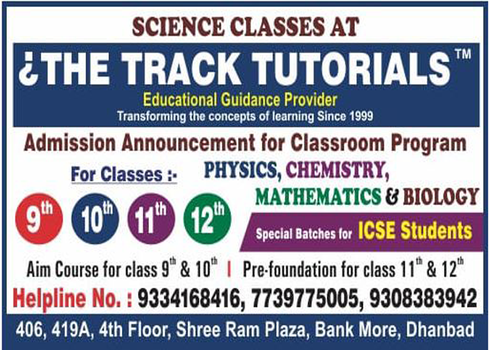 "The Track Tutorials" is one of the top leading coaching institutes of Dhanbad for Science Classes. "The Track Tutorials" is a well known name in the education industry for providing valuable Edu-services to students. The institute is the enlargement of the vision to further display the best of his teaching ability and rich experience to strive and enable its students to make their cherished dreams a breath taking reality and shape the destiny of students.